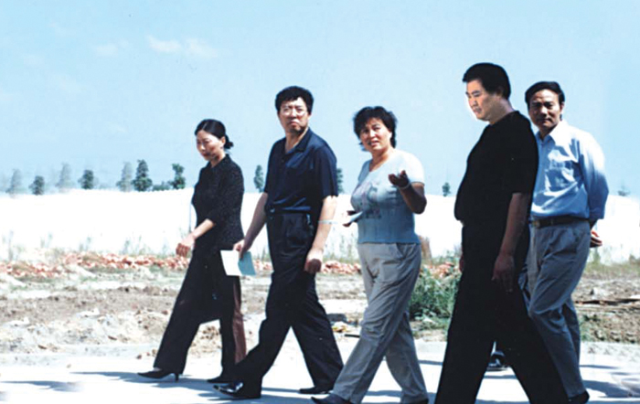 河南省委常委、原許昌市委書記毛萬春(左二)、許昌縣委書記王堃 (右二)等領(lǐng)導(dǎo)來公司考察、公司董事長于紅霞陪同。